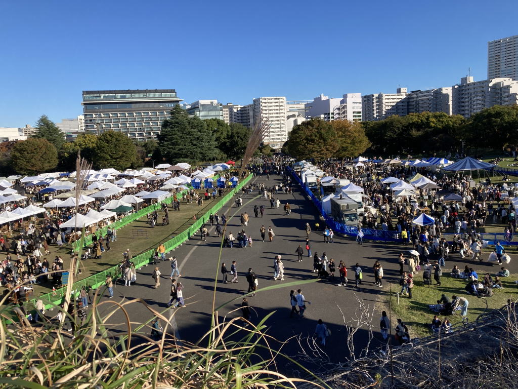私の金融機関とのお付き合いは某信金がメインですが、昔からの口座も都銀・地銀にもあります。都銀は都内に住んでいたときに開設した口座ですが、この近くに支店がなく会社に出かけた際に記帳等を済ませていました。地銀は父から相続した普通預金ですが会社で施設を建てる際にお世話になった関係でお付き合いが続いています。しかし近くにあった支店を閉鎖されATMも撤去されてしまいました。そこで毎月始めに記帳をするため立川に出かけます。ここまで行くと殆どの銀行・信金の支店が少なくともATMはあります。今日は奥が昭和記念公園の花みどり文化センターに行くというので乗せてもらうことに。ついでに庭でとれた柿を娘のところに届けようと。3箇所のATMを回りルミネの本屋さんで雑誌を買って記念公園の入口に向かいました。門の外の信号にも多くの人が並んでいて警備員が整理していました。あけぼの口から場内に入るとものすごい人が溢れています。看板を見たらゆめひろば(無料区域)で「東京蚤の市」という催し物が行われていました。後で調べたら25のカテゴリー(フード、雑貨、古もの、クラフトなど)、店舗数は69ほどありました。写真は文化センターの屋上からゆめひろばを写したもので、あまりに広く入り切れません。当日券は2,200円もするので柵の外から眺めるだけ。3連休の間開催されていたようで今日が最終日。天気にも恵まれたようです。