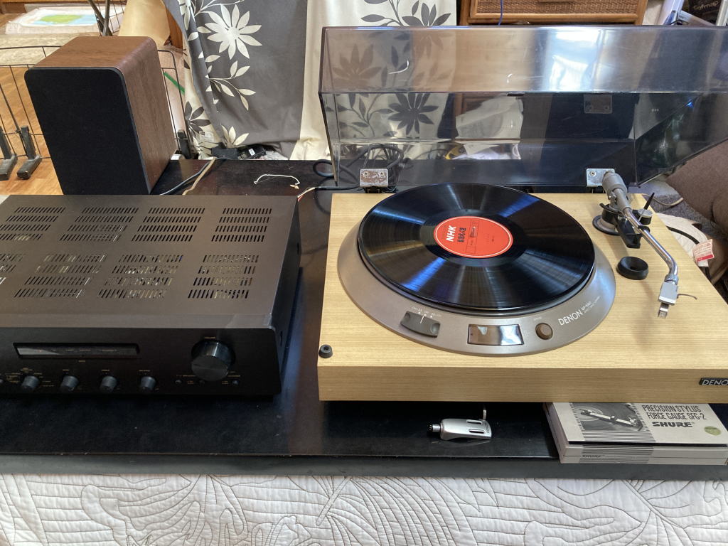 アンプはこれも20年ほど前にCDプレーヤーを繋いで聞くために購入した入門用のものです。スピーカーは取りあえずコンポのものを使うことに。手持ちのカートリッジを繋いで手持ちのレコードをかけてみたら案外いい音で鳴り驚きました。