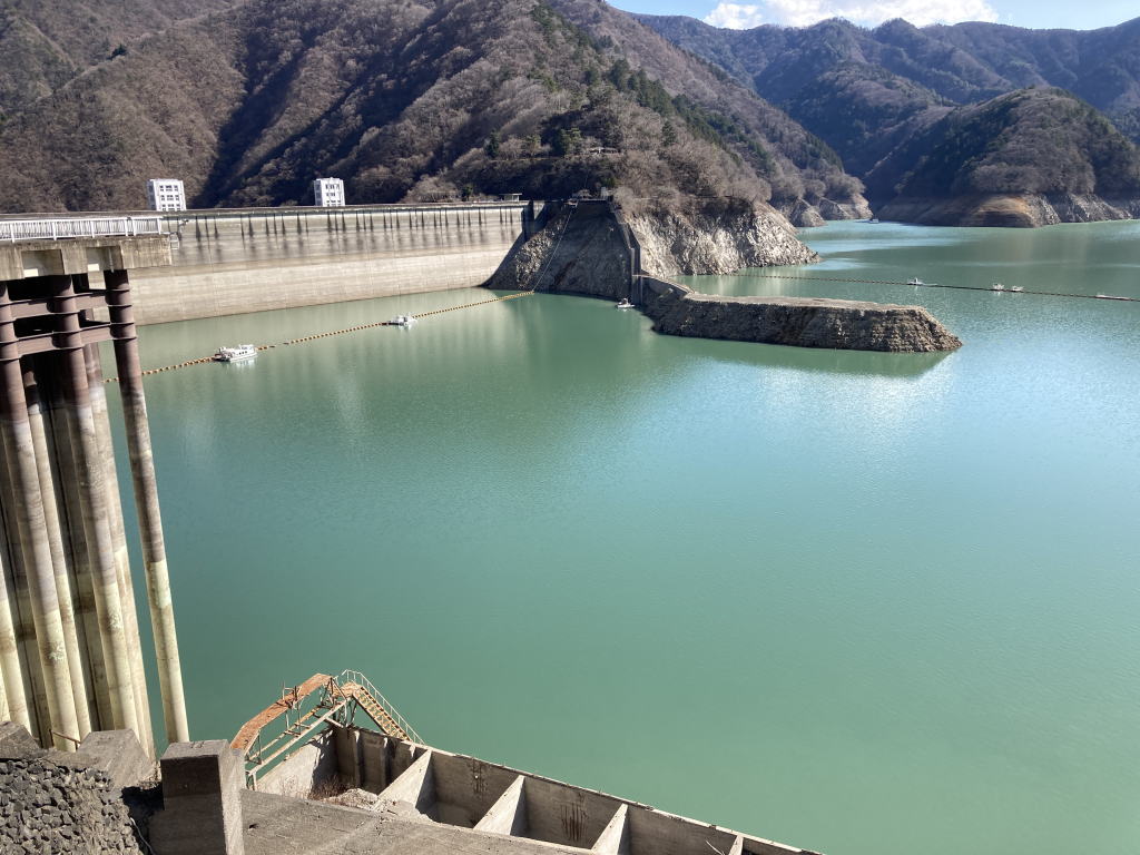 ここまで来たからには、と奥多摩周遊道路を抜け小河内ダムを見ることにしました。周遊道路の入口の峰谷橋付近は殆ど水がありません。写真は小河内ダムの様子です。水はありますが普段の推移から比べると遙かに下の方です。雨が欲しいところです。